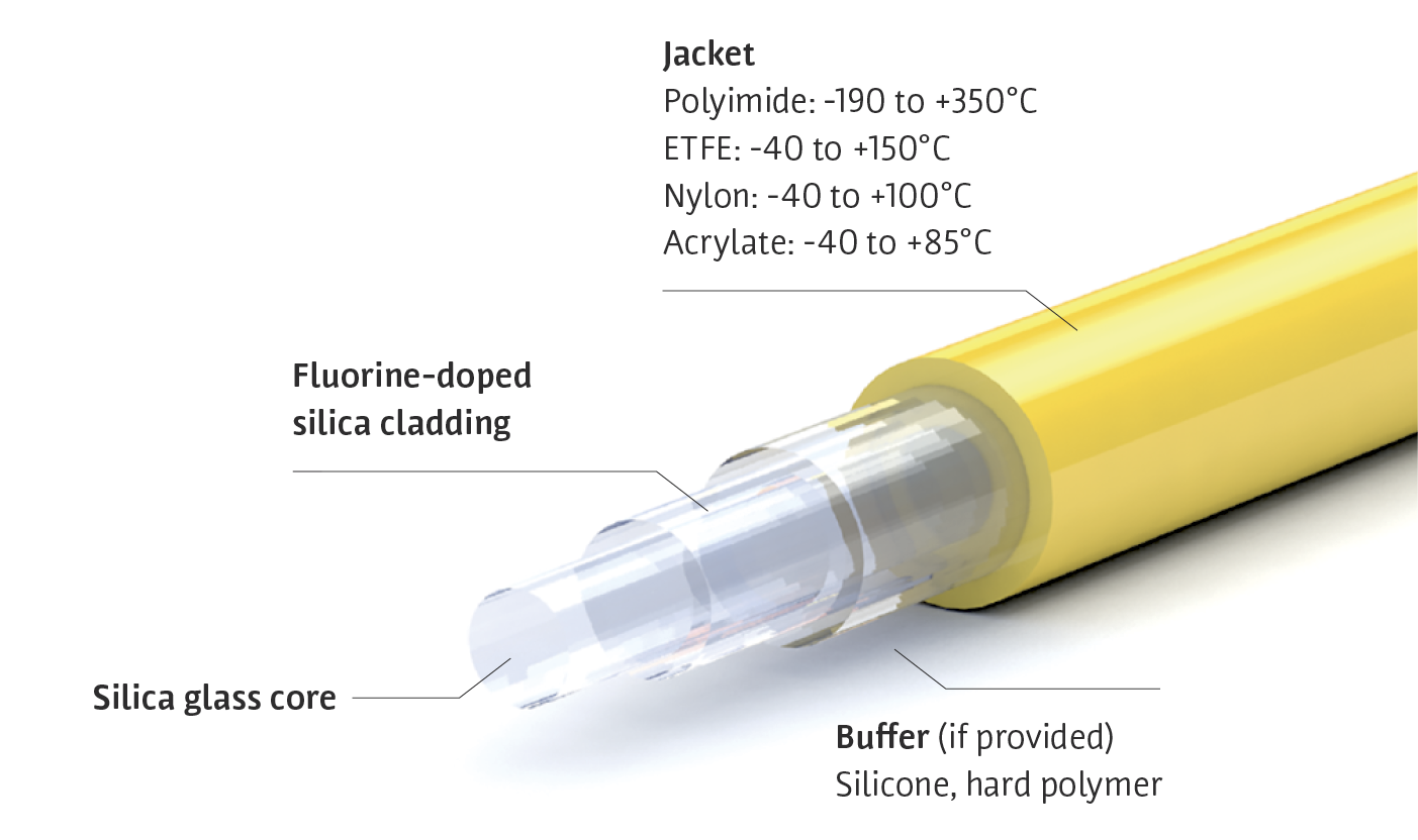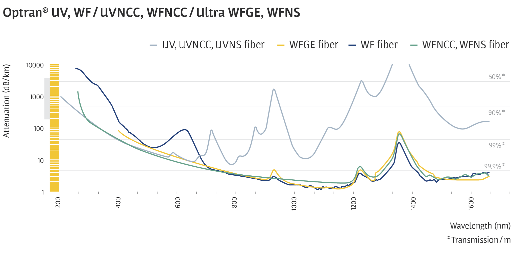 CeramOptec® 高品质的 Optran® UV 和 Optran® WF 光纤在深紫外到深红外范围内表现出色的性能和传输。凭借令人印象深刻的辐照抗性,Optran® UV 和 Optran® WF 是包括光谱学、汤姆逊散射和医学诊断在内的应用的理想选择。我们提供几种护套类型和尺寸的选择——以及根据您的规格定制设计的产品和尺寸。