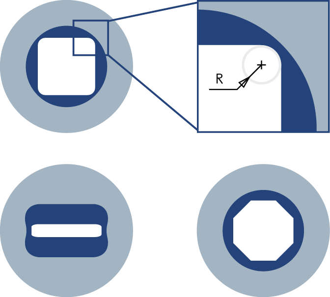 - 广泛的芯层和包层几何形状,例如方形、矩形或八角形